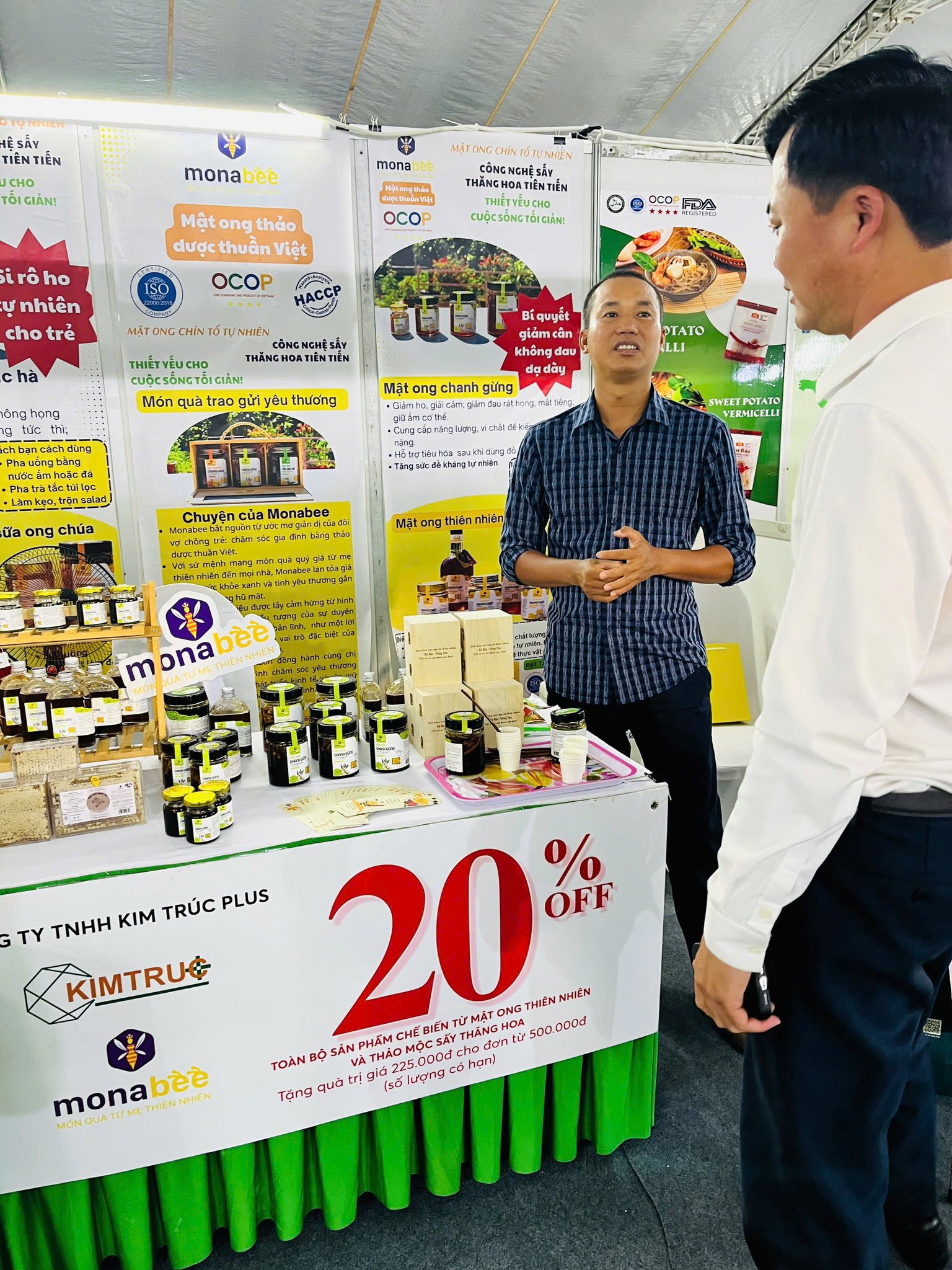 Tất cả đều được chế biến bằng công nghệ hiện đại, đóng hũ thủy tinh và bao bì tinh tế, đạt tiêu chuẩn OCOP 4 sao. Khách hàng không chỉ được thử nếm trực tiếp, mà còn được lắng nghe chia sẻ về quy trình sản xuất, nguồn gốc nguyên liệu, cũng như những câu chuyện đời thực từ người nuôi ong.